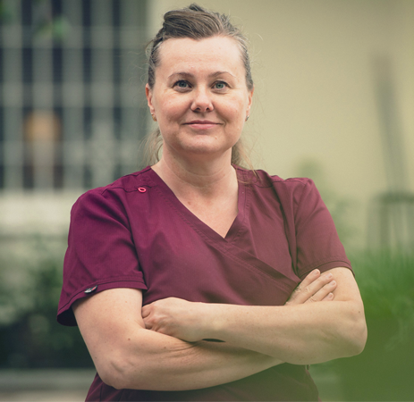 Det som driver mig är min vilja att hjälpa människor och att de känner sig trygga när de är hos mig på behandling. Det bästa med mitt arbete är belöningen efter behandlingen, när min kund går från mig på lätta fötter och med ett skratt, för skratt brukar det bli mycket av!